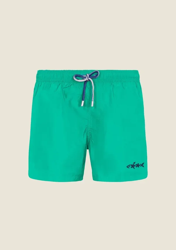 Capo short fit stampato dotato di tasche laterali, laccetto in contrasto e terminali in metallo