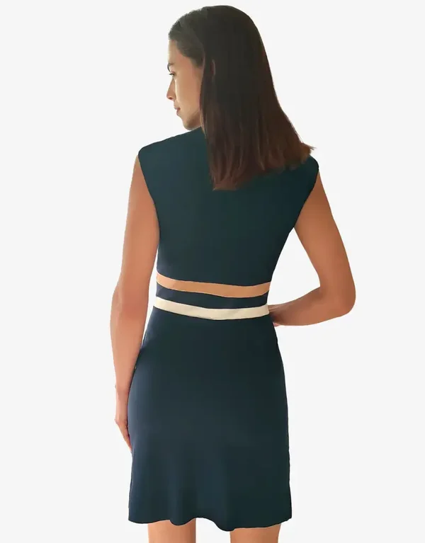 L'abito da spiaggia Doris di Nuria Ferrer, disponibile in uno splendido blu navy con strisce beige e bianche intorno alla vita, è un mini abito da spiaggia realizzato in tessuto per costumi da bagno con maniche a cappuccio e scollatura a V.